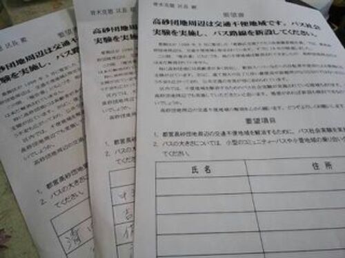 高砂団地周辺が交通不便地域であることは区自信が調査して報告している。私が議員になった時から区の責任で交通不便地域を解消するよう求めて運動してきたが、改めて署名運動を始めている。前回を上回る署名を集めていきたい。本日も1時間ほどの訪問で28筆が…