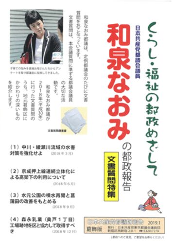 12月から始めた和泉なおみ都議のタウンミーティング。和泉なおみ都議の報告のあとはざっくばらんにフリーディスカッションで、1回目は築地、2回目はオリンピック、そして今回は9日土曜日、午前10時から柴又地区センター大会議室で開催する。テーマは昨年、和…